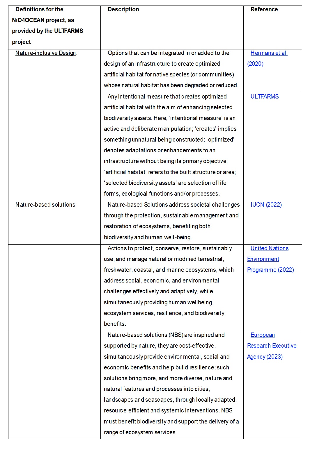 For the purpose of this Toolbox, you will find targeted mitigation measures applied to the first steps of the mitigation hierarchy — avoid and minimise — as the later steps (restore and offset) are more closely related to Nature-Inclusive Design. This definition is in line with the work of the NID4OCEAN project (see the block below for more information).