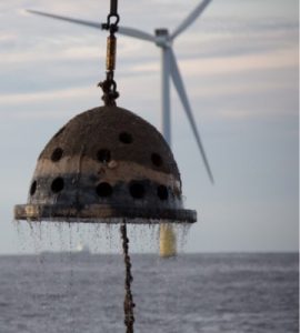 Many species benefit from increased habitat complexity and food options provided by stand-alone structures. These units aren’t attached to turbines or platforms, and function without them. They can be installed in between turbines, in or outside of safety zones (depending on national regulations), and on or next to scour protection. In some cases, stand-alone structures can be installed with their own scour protection measures where needed.